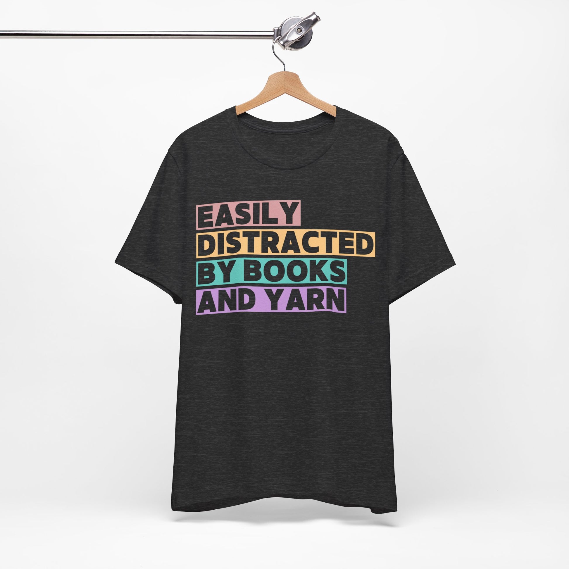 Easily Distracted by Books And Yarn (block) T-Shirt